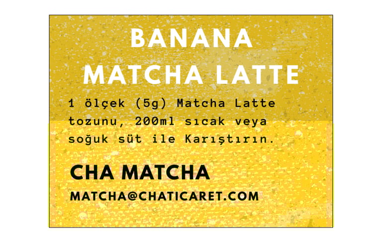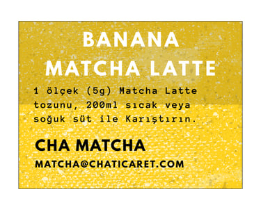 Sadece toz karışımının üstüne 200ml soğuk veya sıcak süt ekleyin. Muz aromalı Matcha Latte'niz hazır. Rengini doğal matcha renginden alır. Renklendirici içermez.